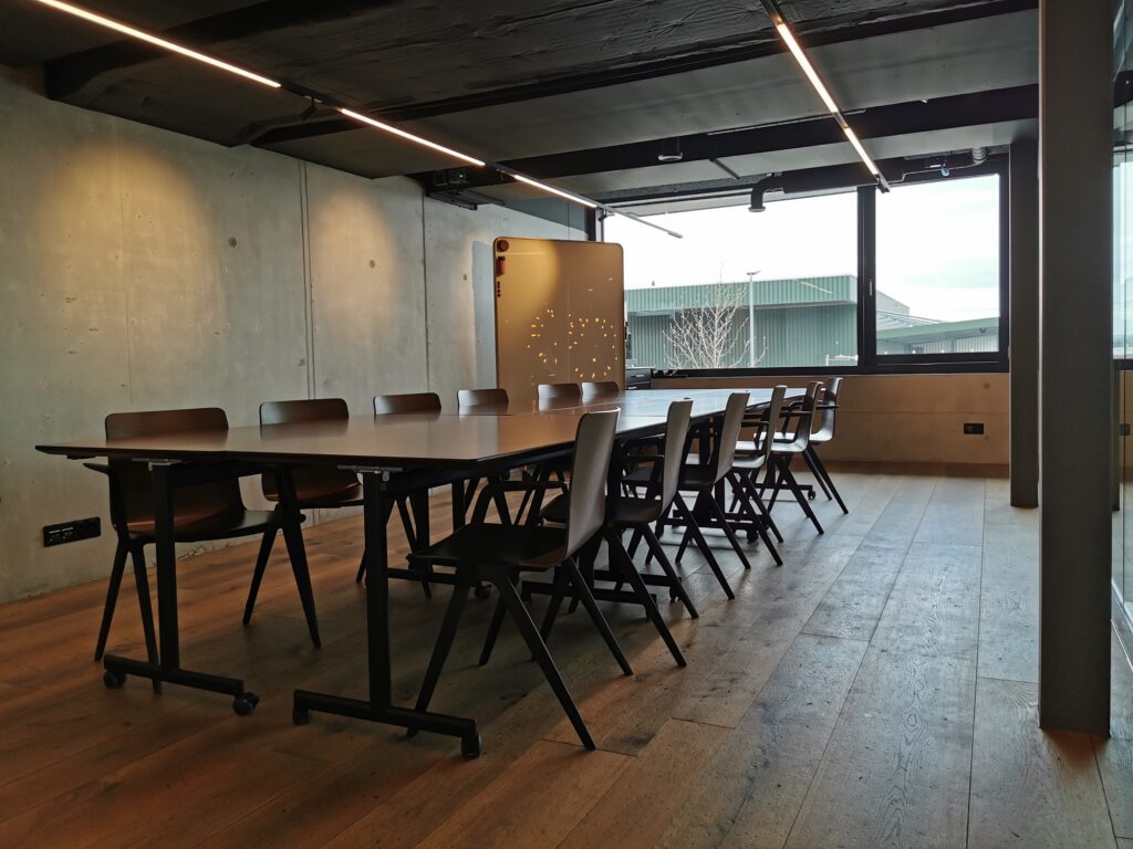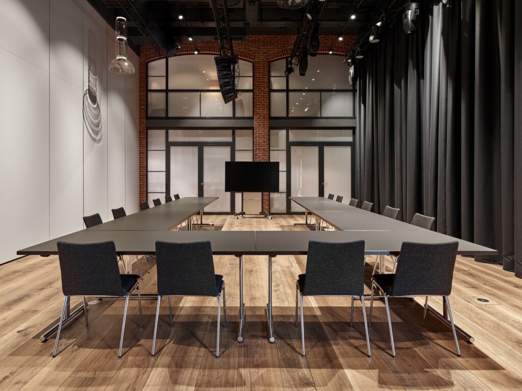 - Seminarraum oder ein Bereich der Eventhalle mit technischer Grundausstattung