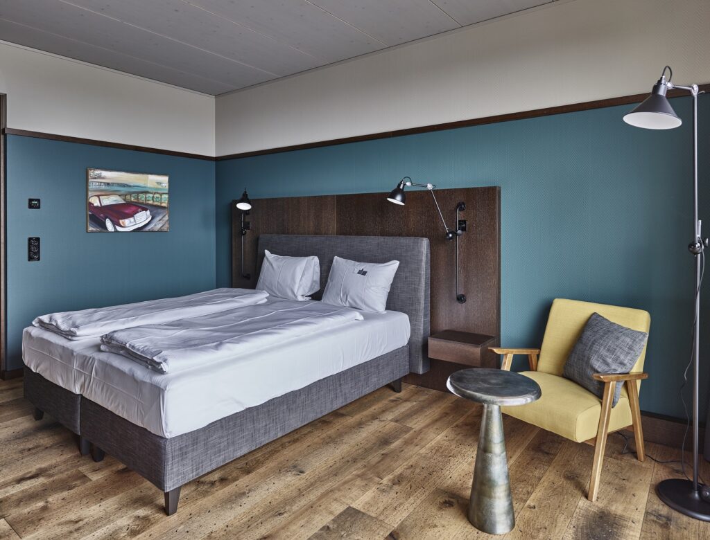 Zum Gesamtkonzept der Autohalle gehören 20 modern eingerichtete, klimatisierte Doppelzimmer. Diese Zimmer bieten nicht nur Auto-Enthusiasten eine Übernachtungsgelegenheit, sondern heissen auch Geschäftsreisende und Familien herzlich willkommen. Die Eventräume bieten Flexibilität und ein aussergewöhnliches Ambiente, ideal für geschäftliche und private Veranstaltungen.